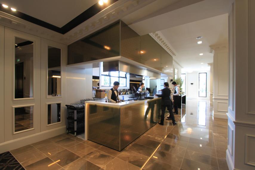 All interior details based on black and white and champagne finishes and fittings, custom upholstered furniture right though to cutlery, glass displays, vases and floral arrangements with carefully selected artwork.